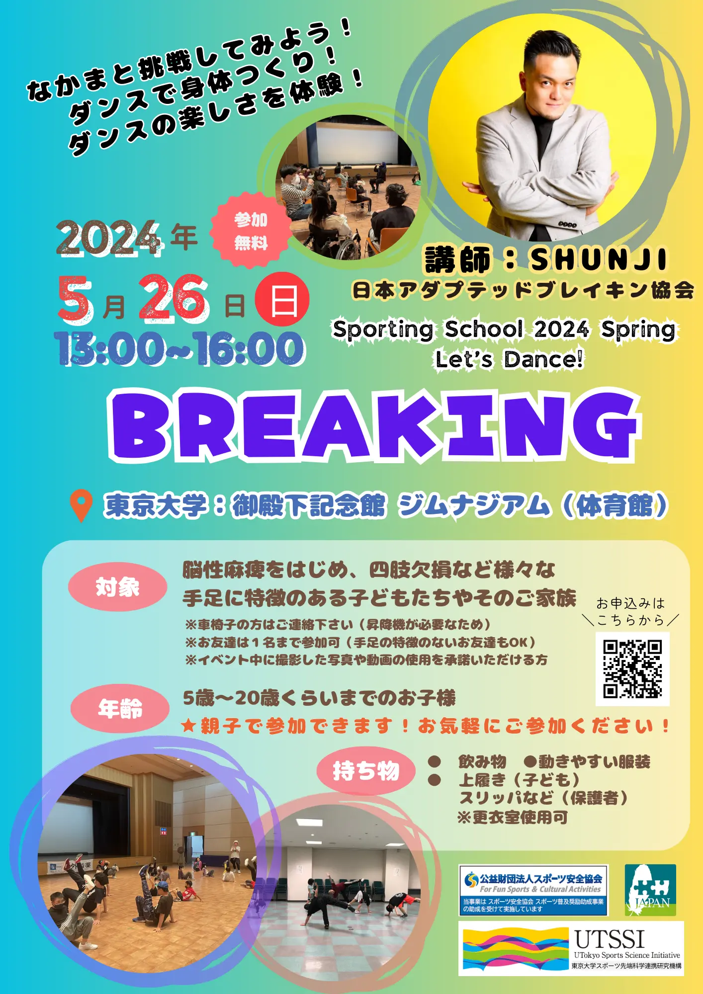 東京大学スポーツ先端科学連携研究機構(UTSSI) 主催のダンスイベントを開催します!Habilis Japanとして初のブレイキングダンスのイベントです。仲間と一緒に挑戦してみよう!